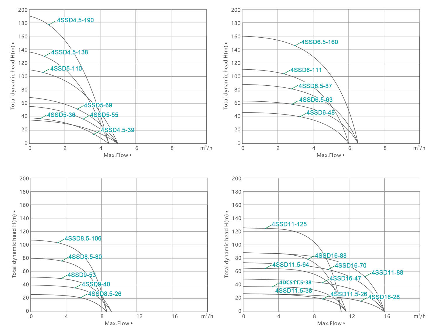 | 4SSD4.5-190-220-2200 | 220 | 220-280 | 2200 | 4.5 | 190 | 1.25" | 2 | <420V | ≥3300W |