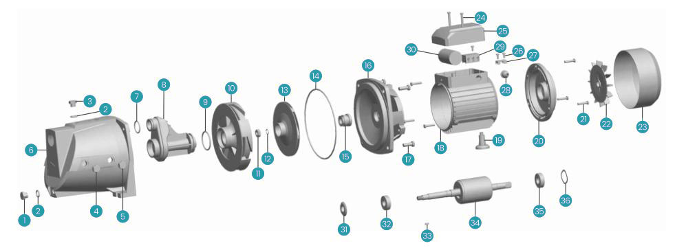 | 10 | Diffuser | 22 | Fan | 34 | Rotor |