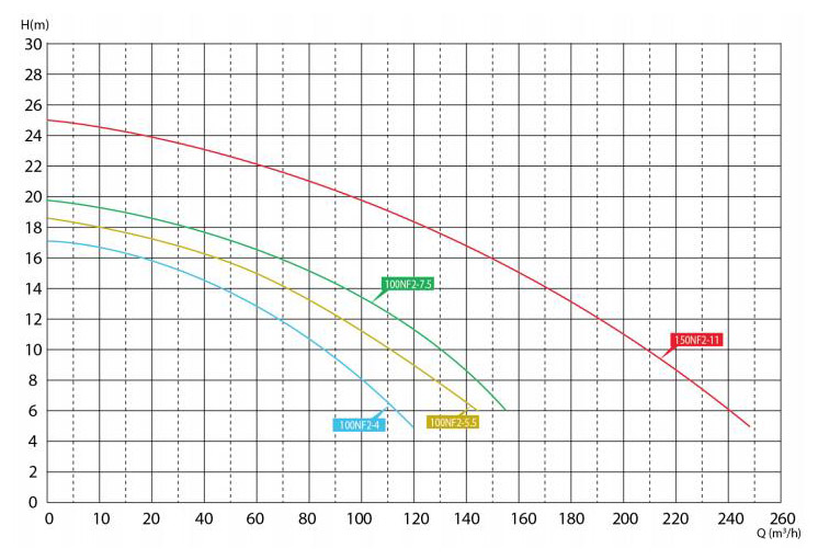 | Outlet Size (mm) | Pump Type | Two pole motor | (KW) |