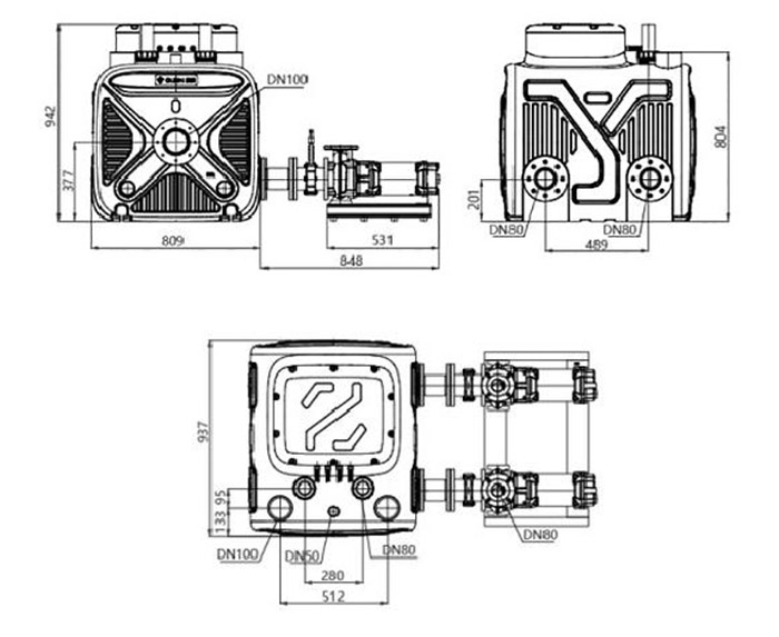 WL - 40L has three water inlets DN100, four water inlets or maintenance holes DN50 and one outlet DN50. The top part is equipped with a DN50 exhaust port. Water level monitoring is carried out using a double floating ball sensor, with an optional pressure distribution sensor. The controller has manual automatic dual mode, in addition, you can choose wall hanging control box with LED screen to realize motor protection, fault alarm and other functions.