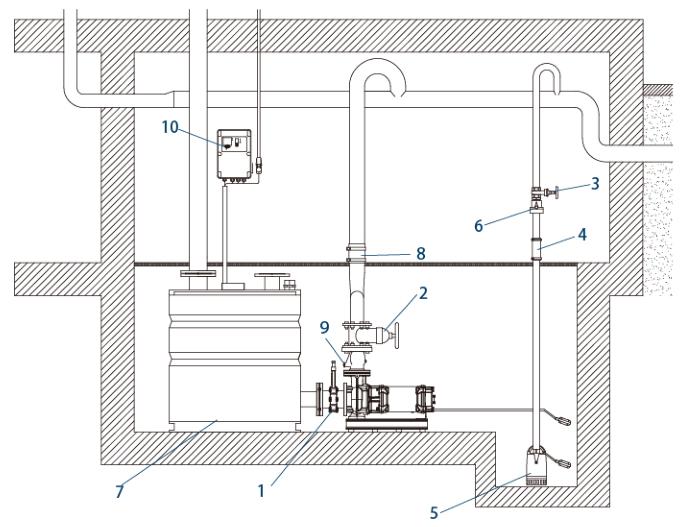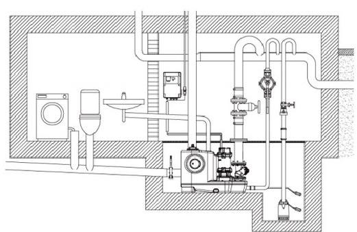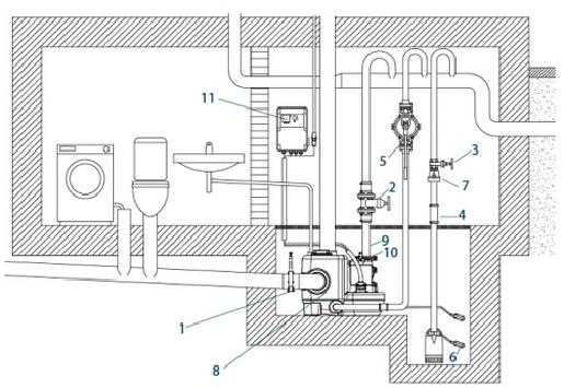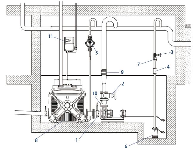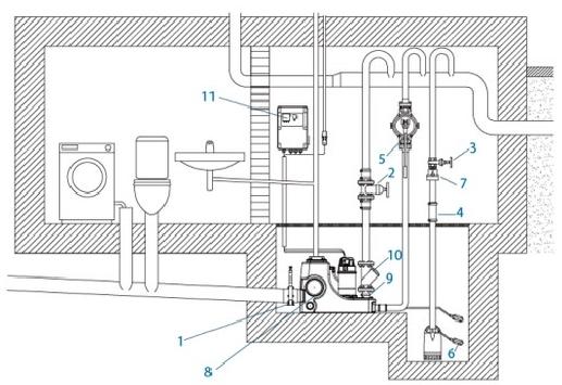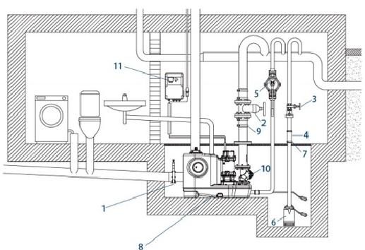 | 7 - Check valve | 8 - Sewage lifting unit | 9 - Shock absorber hose |