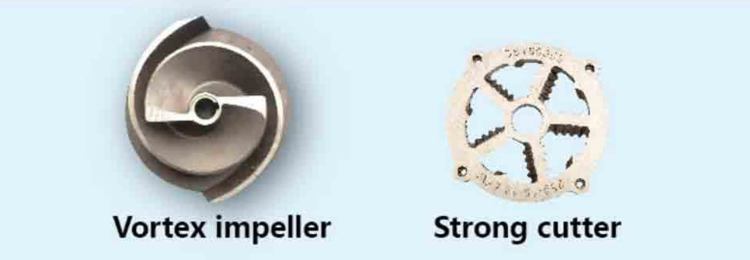 1. Vortex semi-open impellers allow passage through large solids