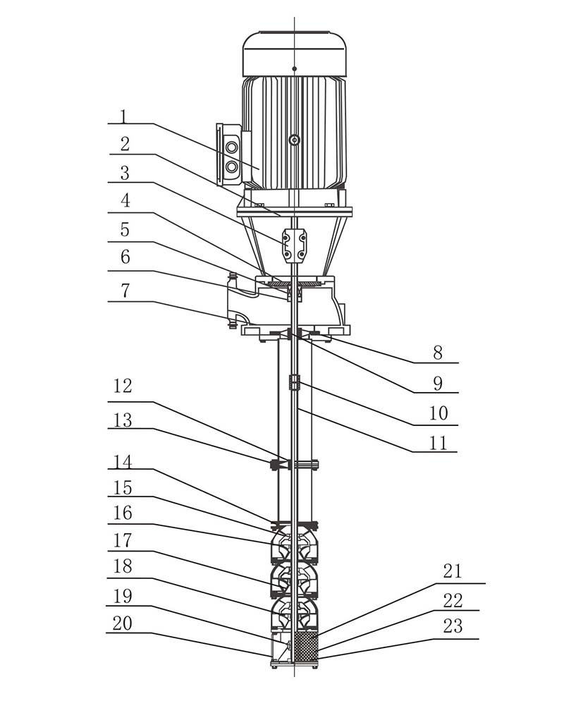 This part consists of water pipes, drive shafts, couplings, and brackets. The water pipe is connected by a flange, and the transmission shaft is made of 2Cr13 steel or stainless steel.